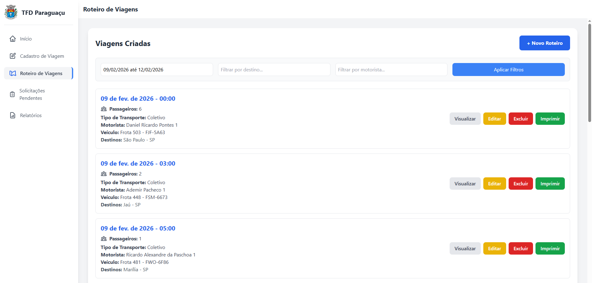 Módulo de agendamento e logística para Transporte Fora do Domicílio. Otimização de rotas e controle de pacientes.